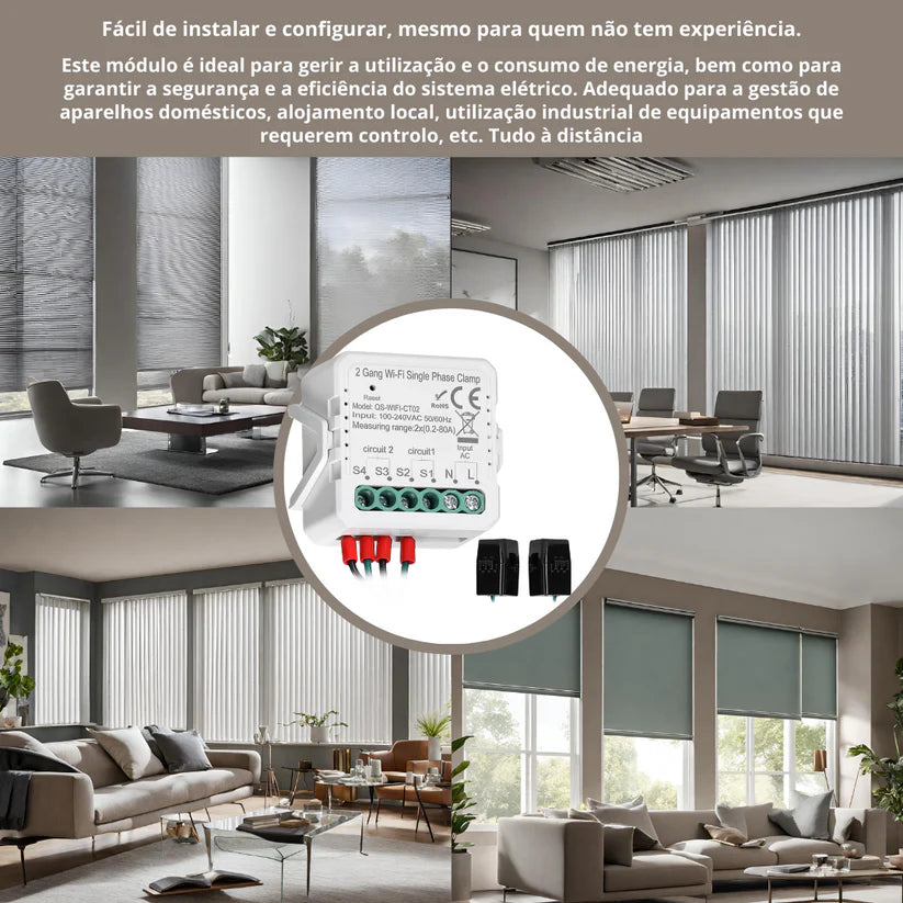 O medido de consumo bifásico é utilizado principalmente em sistemas eléctricos para monitorizar e controlar o fluxo de eletricidade num circuito bifásico, gama de medição: 0.2-80A por canal. É normalmente utilizado em ambientes residenciais e comerciais.